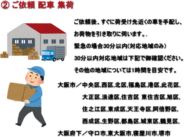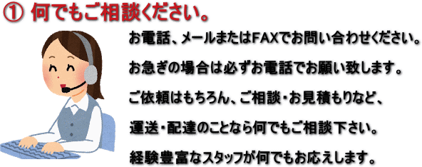 緊急の荷物が出ましたらお電話下さい配車可能かどうか5分以内に回答します